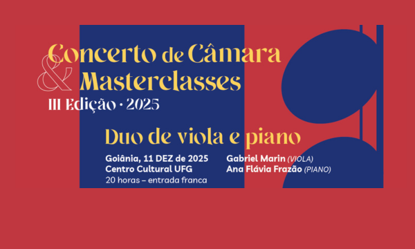No dia 11 de dezembro, o projeto chega ao palco do Centro Cultural UFG, em Goiânia. A programação começa às 19h30, com uma palestra introdutória da Profa. Dra. Gyovana Carneiro, que apresenta o contexto das obras e dos intérpretes. Em seguida, às 20 horas, acontece o concerto com o duo formado por Gabriel Marin (viola) e Ana Flávia Frazão (piano), com entrada franca.